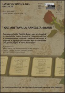 Il 14 gennaio scorso sono state posate 4 pietre d’inciampo sul sagrato della Chiesa di Trivignano. Un “monumento” che si integra nel nostro tessuto sociale e territoriale a testimonianza di una tragica pagina della Storia”.