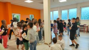Poi, con un gioco allegro di numeri e sorrisi, sono nate coppie inattese: alunni di classi diverse che, come piccoli viaggiatori, si sono incontrati per la prima volta. Insieme hanno dato vita a mongolfiere di carta, leggere e luminose. Non erano semplici lavoretti: erano simboli di speranza, di coraggio e di libertà, capaci di sollevarsi verso il cielo per guardare il mondo dall’alto, con occhi nuovi e cuori aperti.
